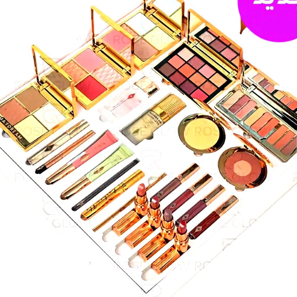 • 🌟 المميزات:يحتوي على 24 قطعة متنوعة تشمل ظلال العيون، أحمر الشفاه، البلاشر، البرايمر، المسكارا، الكحل، فرش تطبيق والمزيد